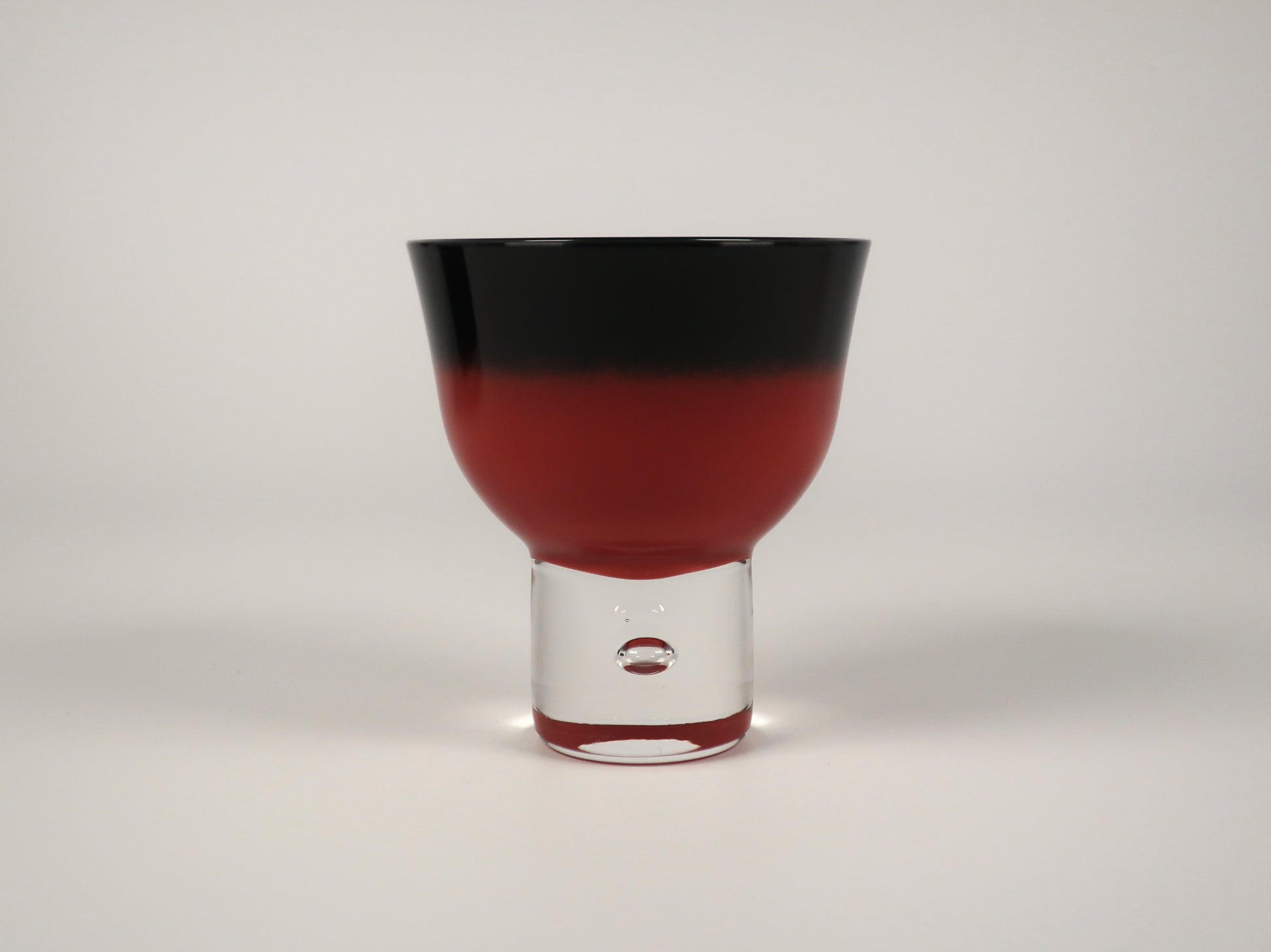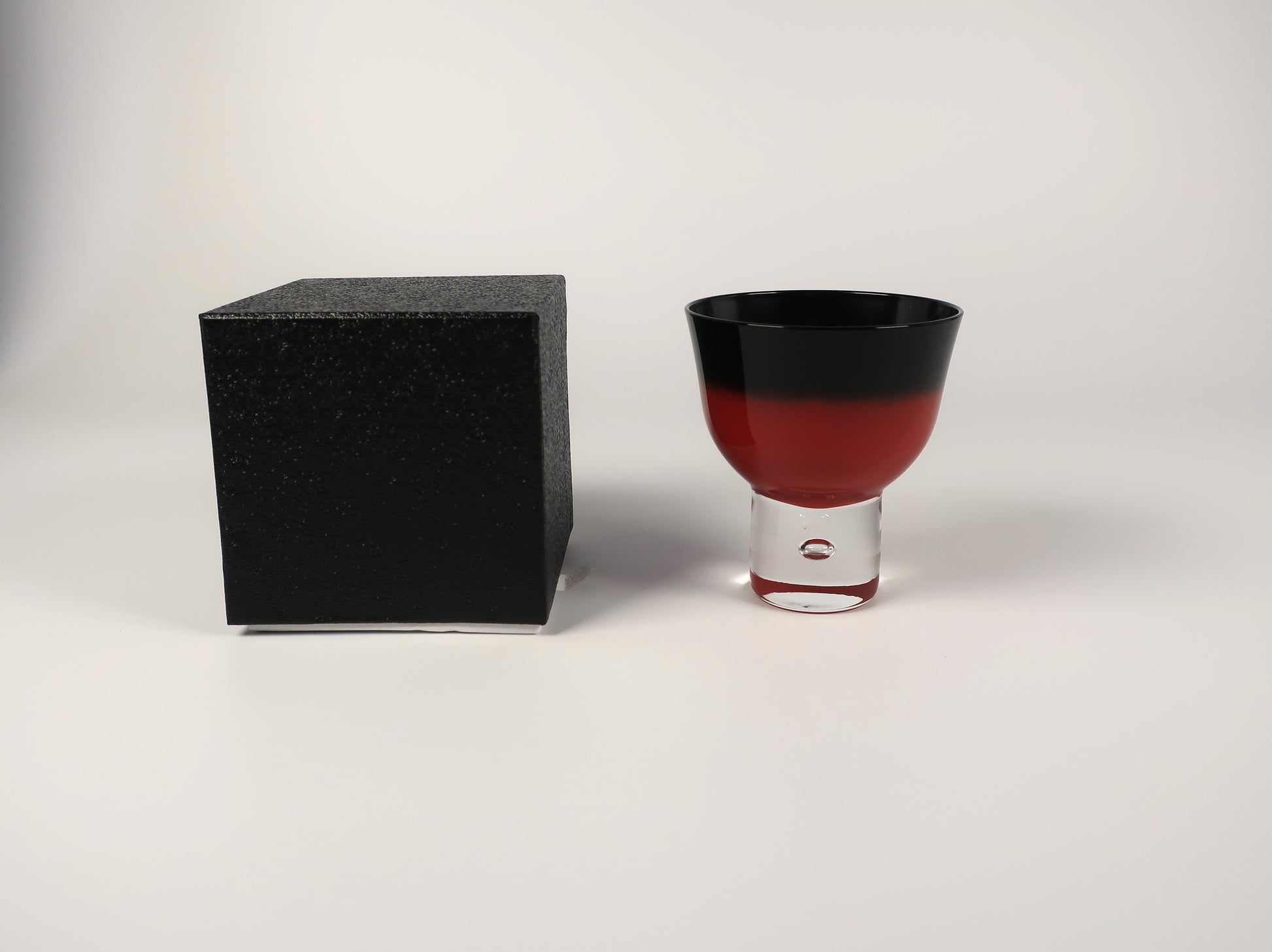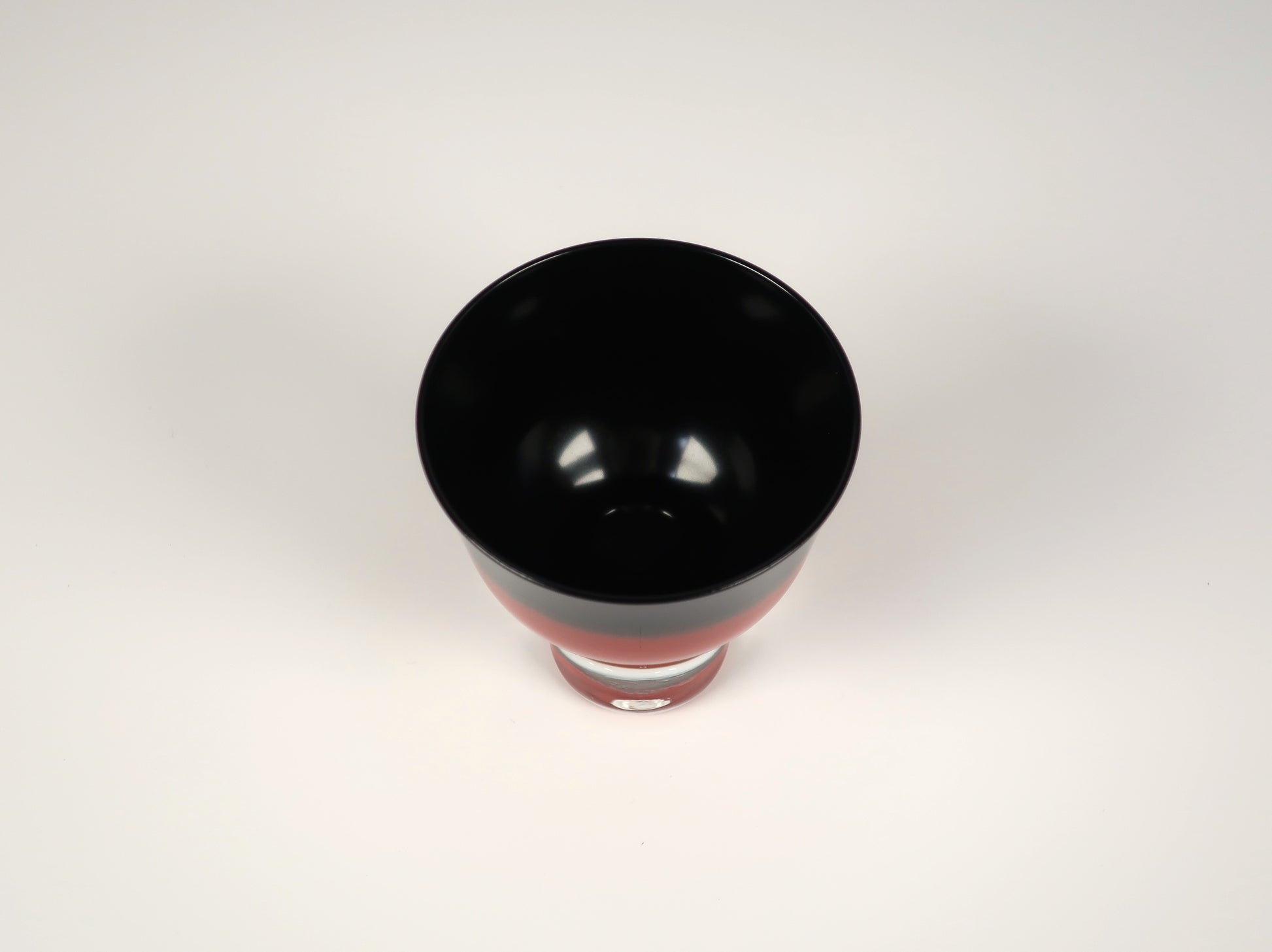 Made from clear glass and delicately lacquered on the inside using the traditional Aizu-nuri technique, it showcases a refined gradient of vermilion and black—known as bokashi-nuri, or blurred lacquer. The colors melt into one another like ink in water, creating a quiet drama of depth and contrast.
